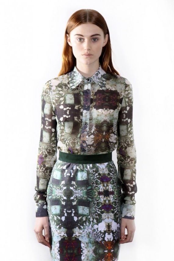 ผลงานเสื้อผ้าจาก Flik Hall Autumn Winter 2012-2013 ด้วยภาพพิมพ์ที่มีความสวยงาม งาน Repeat Pattern จากการหักเหของแสง สร้างความน่าสนใจให้กับคอลเลคชั่น และการนำหนังเทียม PVC มาใช้ ทำให้เกิดความ คอนทราสต์กับลายภาพพิมพ์ มีการใช้สีส้มเข้ามาเบรกคอลเลคชั่นไม่ให้ดูจืดเกินไป