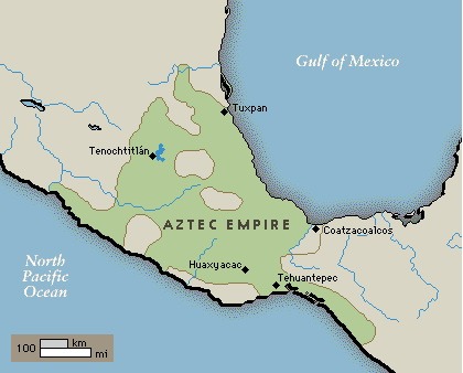 ชาว Aztec ทำสงครามขยายอาณาเขตอย่างกว้างขวาง โดยมีเมืองหลวงอยู่บริเวณเกาะกลางน้ำ ส่วนพื้นที่รอบๆ จะเป็นของชาวพื้นเมืองเผ่าต่างๆที่ Aztec ชนะสงครามและปรับให้เป็นเมืองประเทศราชไปซะ โดยที่เมืองประเทศราชเหล่านี้ต้องส่ง ส่วย ไปให้ชนชั้นปกครองที่เมืองหลวงโดยตลอดครับ